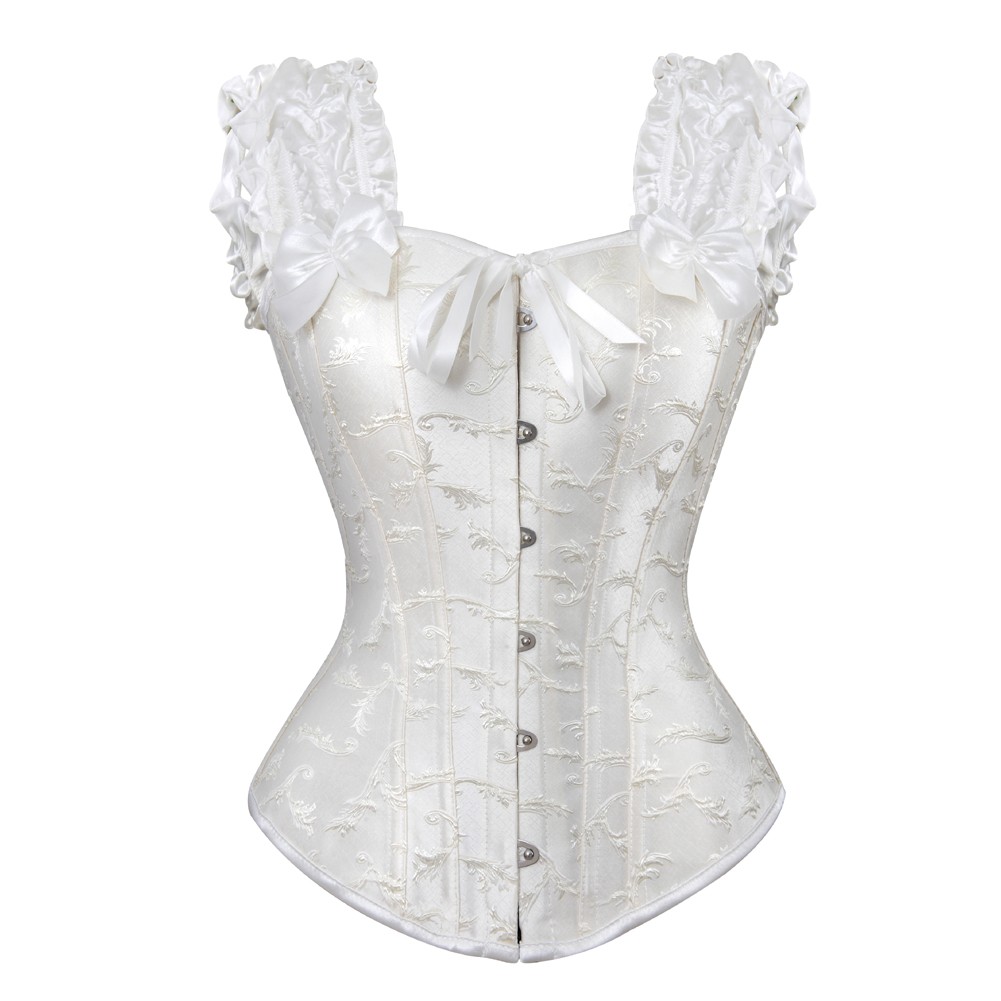 Bustier Corset Steampunk Gothic Steel Boned Ruched Sleeves Corselet Embroidery Wedding Carnival Party Clubwear Fashion Outwear
