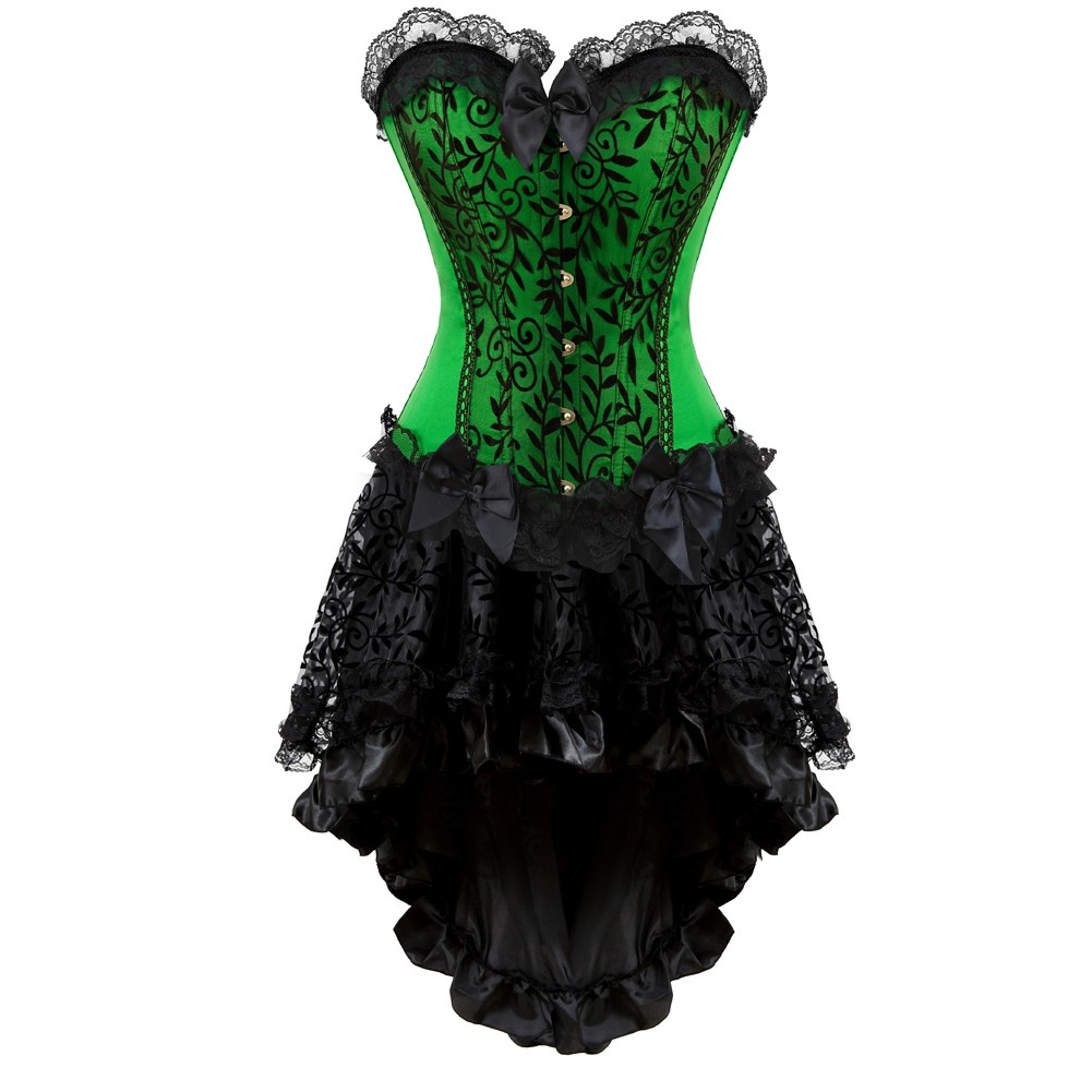 Corset and Skirt Steampunk Gothic Slimming Lace Overlay Bustier Dress Lace Up Boned Korsage Sexy Femme Carnival Party Clubwear