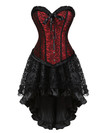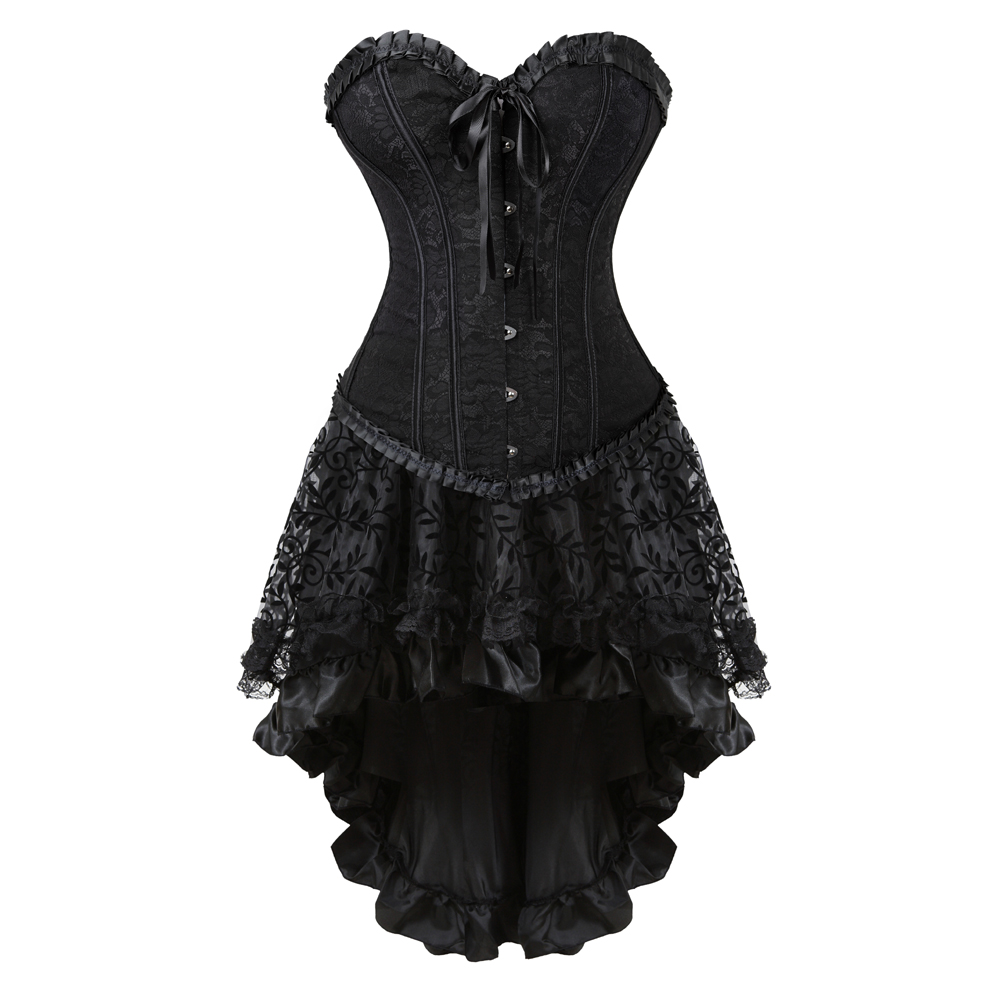 Corset and Skirt Steampunk Gothic Slimming Lace Overlay Bustier Dress Lace Up Boned Korsage Sexy Femme Carnival Party Clubwear