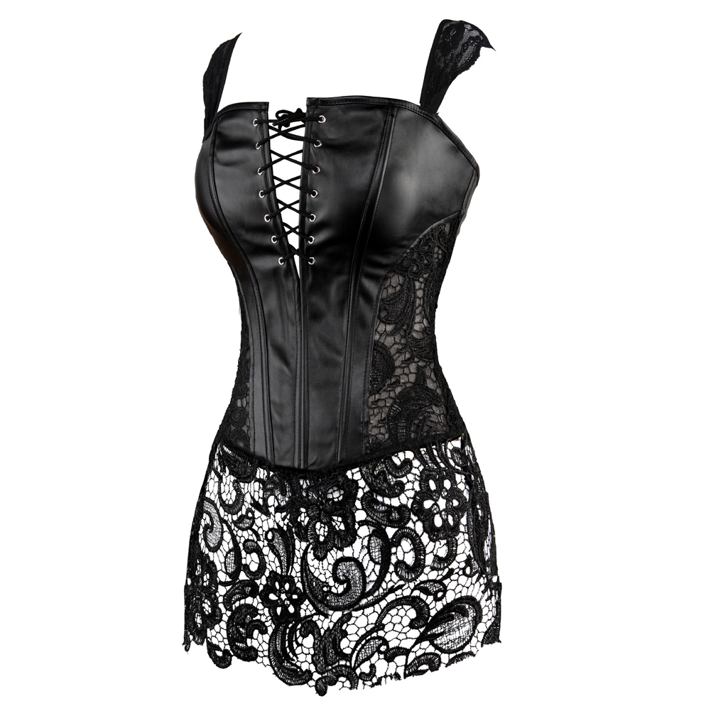 5. Cost-Effective : This women’s Off Shoulder Fashion PU Steampunk Gothic Hollow Out Corset Bustier with Lace Mesh Skirt uses faux leather fabric externally. The surface color is bright and glossy, the texture is soft, wear-resisting and fold-resistant, and it is a kind of material with high cost performance. Lace shoulder straps upgrade sex appeal, and if you like the bare shoulder style, you can also pull the straps down into a word shoulder