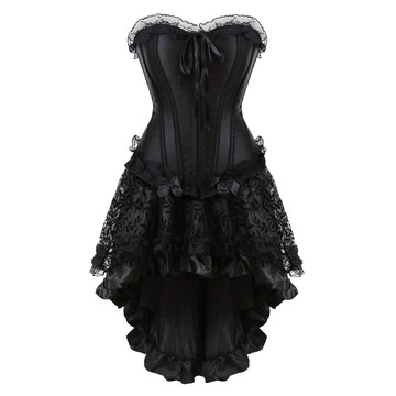 Corset and Skirt Steampunk Gothic Slimming Lace Overlay Bustier Dress Lace Up Boned Korsage Sexy Femme Carnival Party Clubwear